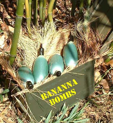 Banana Bombs: Paintball's Newest Grenade The Banana Bomb is the newest paintball grenade to hit the market. It is made by NZ Paintball Supply. They are available in Yellow and Green Fill. I have seen two paint grenades to date. Tippmann's squad buster grenade and now the banana bomb. Overall these grenades are very similar in that they both use a pressurized balloon to project the paint onto the target.
